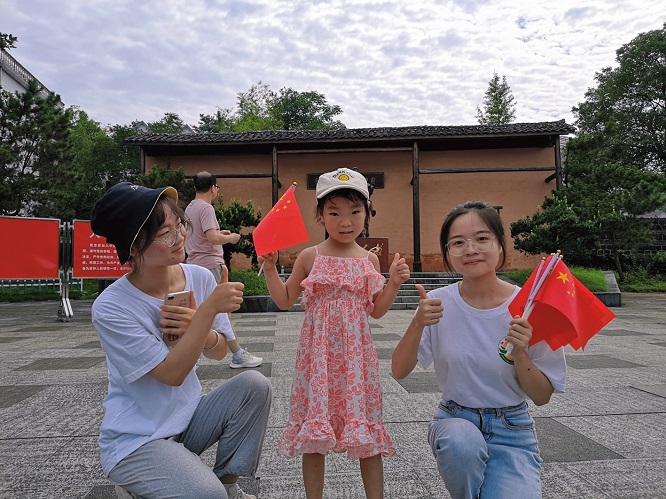 走进烈士故里,探寻信仰之源。调研团队前往方志敏烈士故里——弋阳县漆工镇湖塘村。队员们在湖塘村通过参观方志敏故居、走访调查、与游客互动等形式,深切感悟革命精神。在方志敏故居厅堂内有一副对联“心有三爱奇书骏马佳山水,园栽四物苍松翠竹洁梅兰”。寥寥数字,阐述了方志敏清贫的一生。随后,队员们与参观游客交流感悟,游客感叹如今幸福生活来之不易,要坚定理想信念,吃水不忘挖井人;此外,队员们向前来参观的每个小朋友们赠送了一面五星红旗,鼓励他们好好学习,热爱祖国!