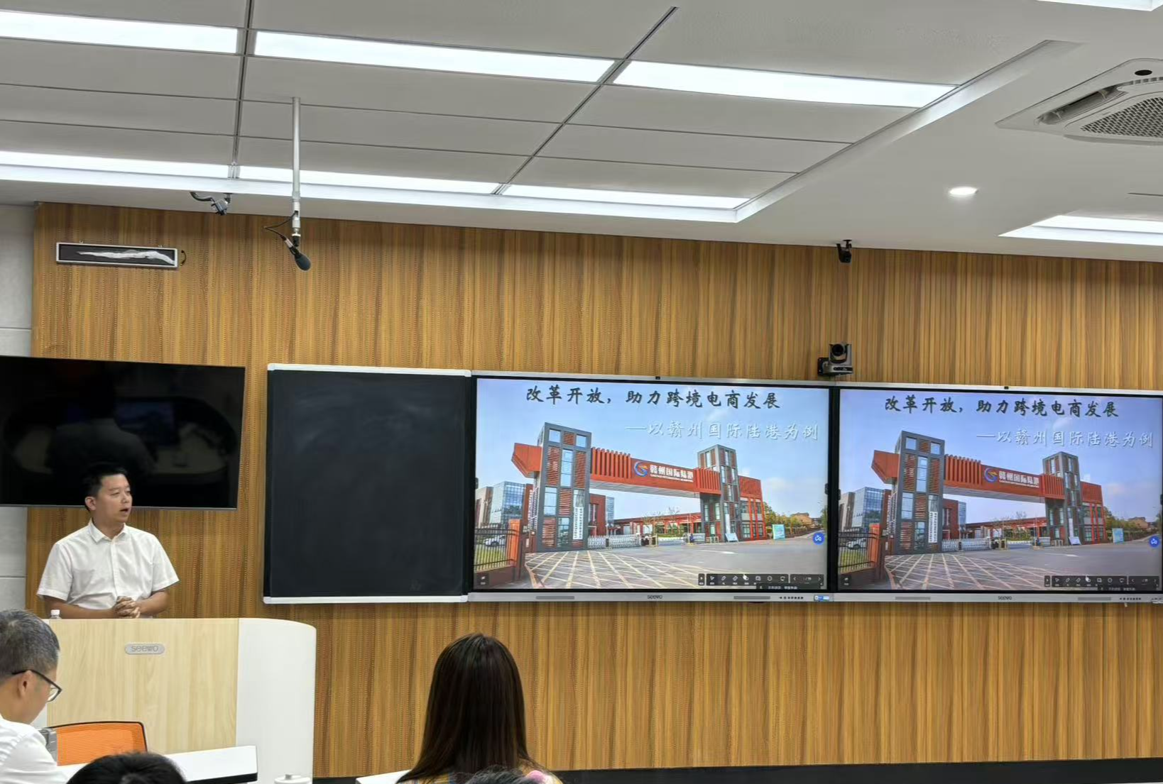 王博围绕“改革开放助力跨境电商发展—以赣州国际陆港为例”为主题,结合自身学习和工作经历,讲述了赣州国际陆港的创设背景及其对于跨境电商发展的拉动作用,让同学们真切感受到我国全面深化改革开放的前所未有力度,以及给大学生成长成才所带来的机遇。