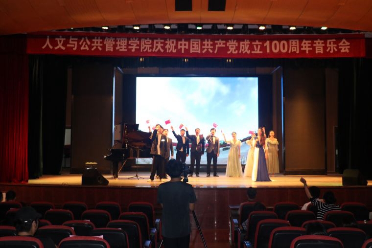 为喜迎中国共产党百年华诞,深入开展党史学习教育,6月17日晚,人文与公共管理学院在音乐厅举办庆祝中国共产党成立100周年姜昊师生红歌音乐会。音乐会由我院党委主办,音乐系教工党支部、大学生第二党支部联合承办,音乐系教师党员姜昊副教授携手青年学生深情演绎经典红歌,用红色旋律咏颂时代,用嘹亮歌声祝福百年。学院党委班子全体成员及部分师生现场聆听。