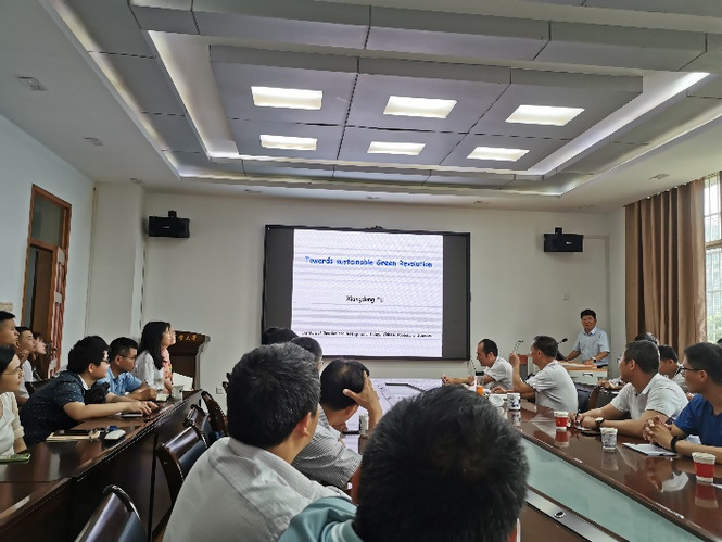 傅向东研究员作了题为《Toward sustainable green revolution》的学术报告,探讨了“绿色革命”对农作物化肥施用量、粮食产量和播种面积的影响,并介绍了团队在水稻氮肥利用效率相关分子机制研究的进展。