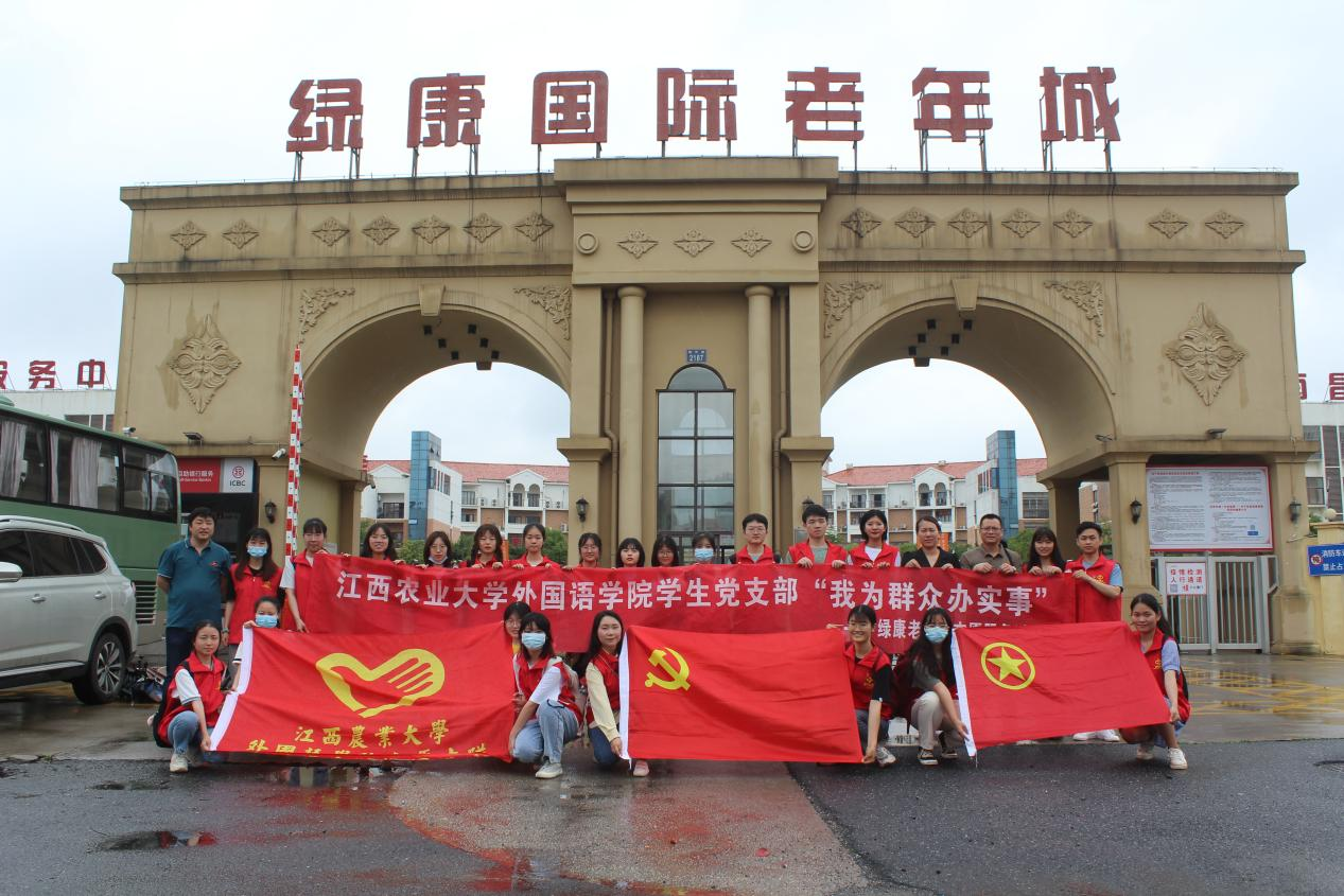 近日,外国语学院学生党支部三十余名学生党员赴绿康老年城开展“我为群众办实事”志愿服务。学院党委副书记罗志华,党支部书记曹人龙、韩柳参加此次活动。