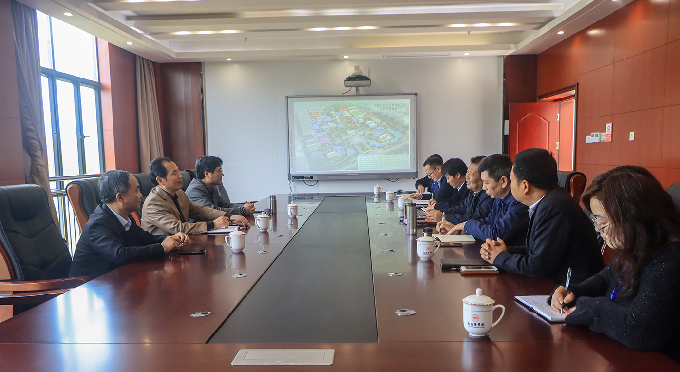 在学院明道楼会议室,南昌商学院院领导就学院转设事宜进行汇报,校领导与商学院全体领导班子就转设工作进行了深入交流。