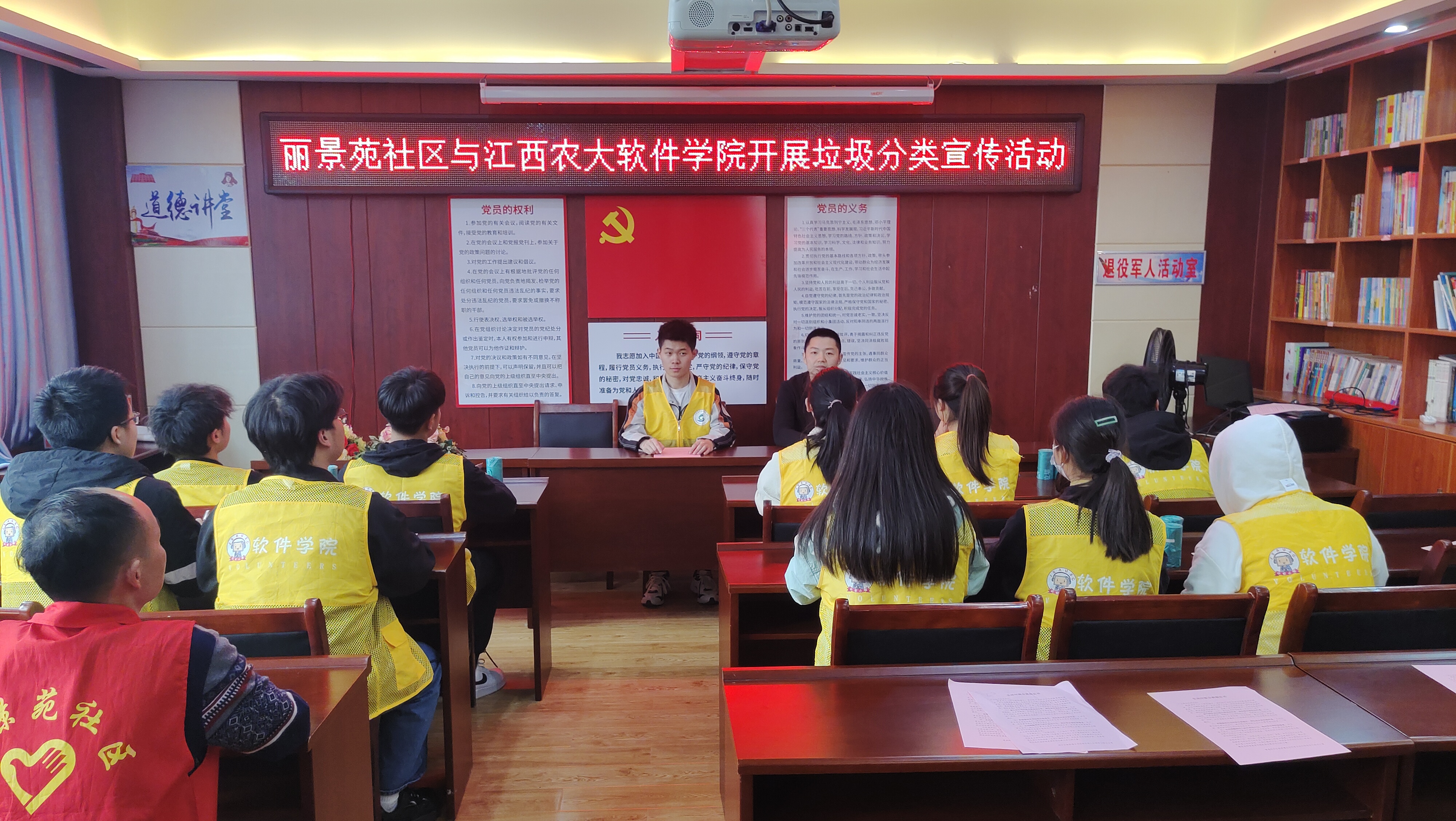 为庆祝建党百年华诞,扎实推进党史学习教育入心走实,把“学党史、悟思想、办实事、开新局”贯穿党史学习教育全过程,切实践行“想群众之所想、急群众之所急、解群众之所困”的理念。4月15日,软件学院学生党员、团员组成的志愿团来到南昌市丽景苑社区开展“我为群众办实事,垃圾分类进社区”志愿活动。