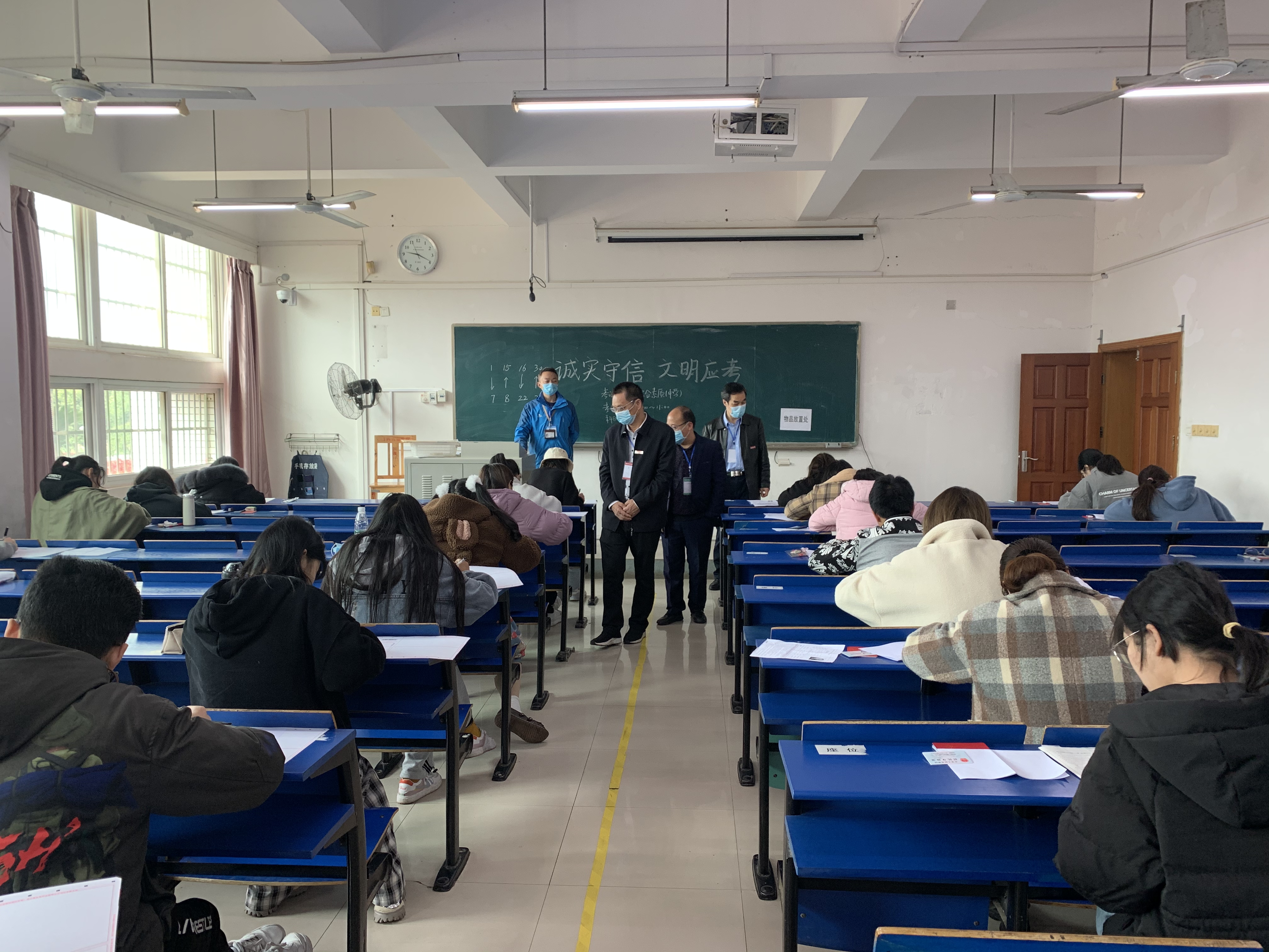 考试过程中,各考场监考教师严格按照《监考人员手册》进行监考,学生严格遵守考场规则,从体温测量、证件检查、试卷领取、考生入场到考试结束的各个环节都做到了严谨、规范、高效,考场秩序良好,考试顺利进行。