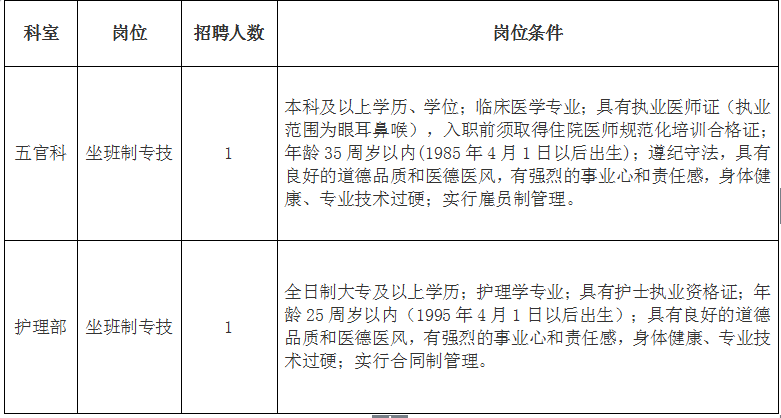 因医院临床工作需要,现面向社会公开招聘1名临床医生和1名护士。有关事项公告如下: