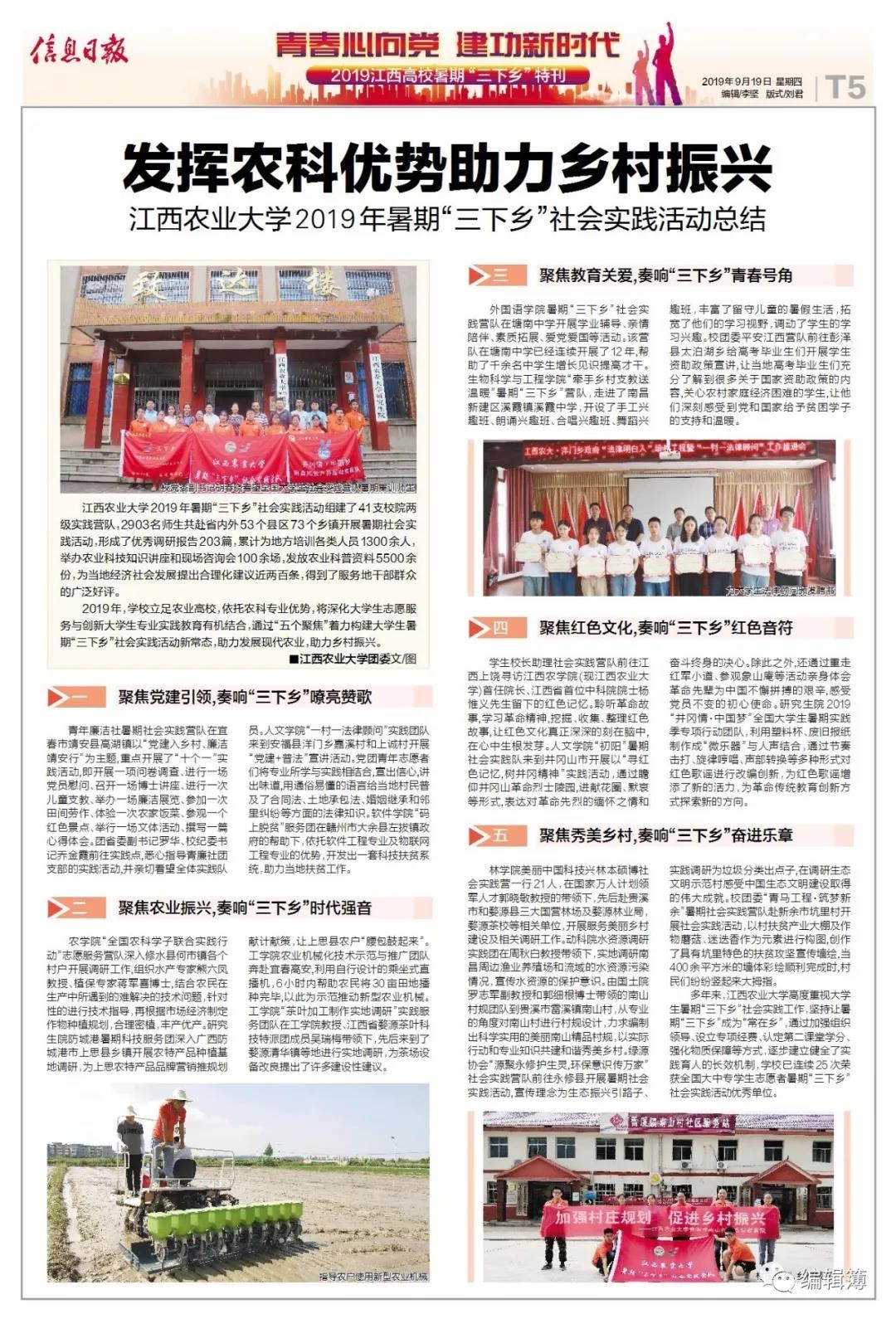 【信息日报】发挥农科优势 助力乡村振兴——bevictor伟德国际1946官网2019年暑期“三下乡”社会实践活动总结