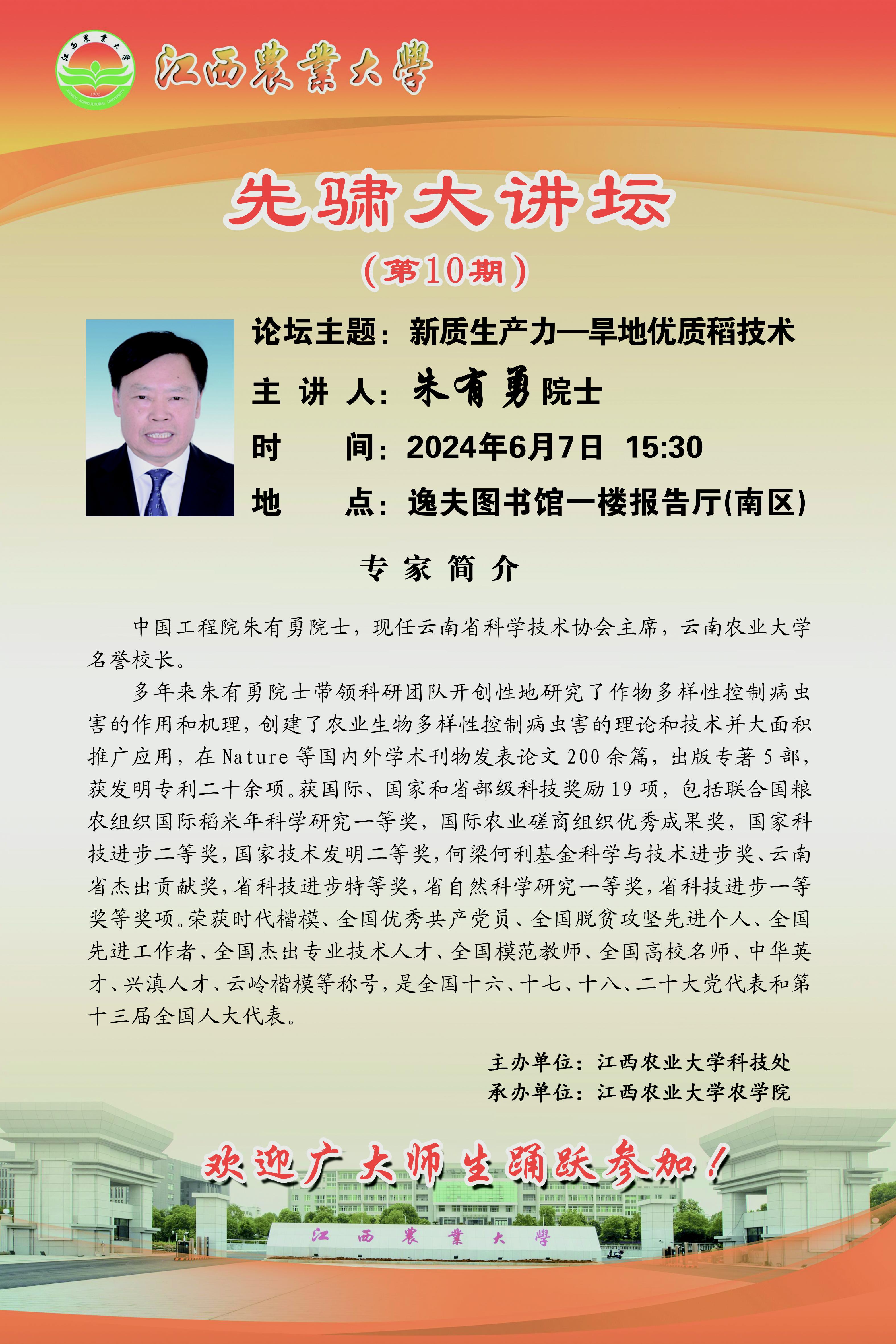 先骕大讲坛(第10期):新质生产力-旱地优质稻技术