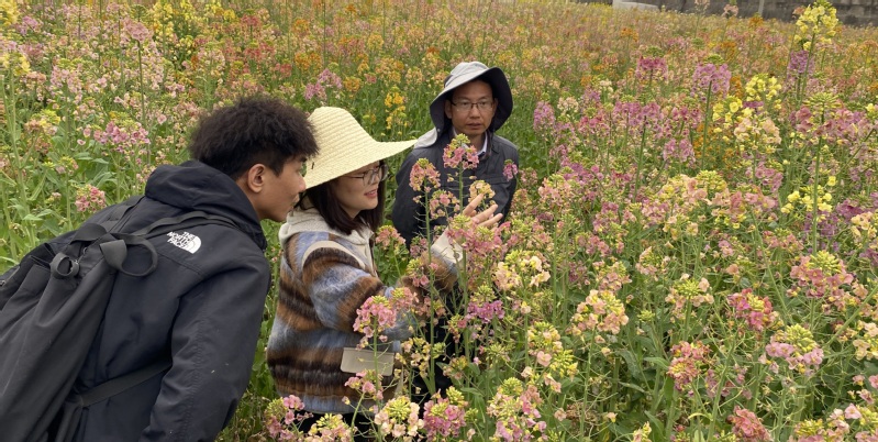 梁梅学术报告的题目是《观赏植物花斑多样性形成机制:从“零散点”到“纵向条纹”的演化》,报告以猴面花为基础材料,通过对其花瓣的均一着色以及各种花色斑纹演化过程的研究,提出了观赏植物花斑形成机制及调控方法,并结合数学模拟,实现花色的分子设计。报告结束后,梁梅前往伟德彩色油菜花科研基地进行了调研,并与农学院师生就油菜花花色形成机制及调控方法进行交流和探讨。