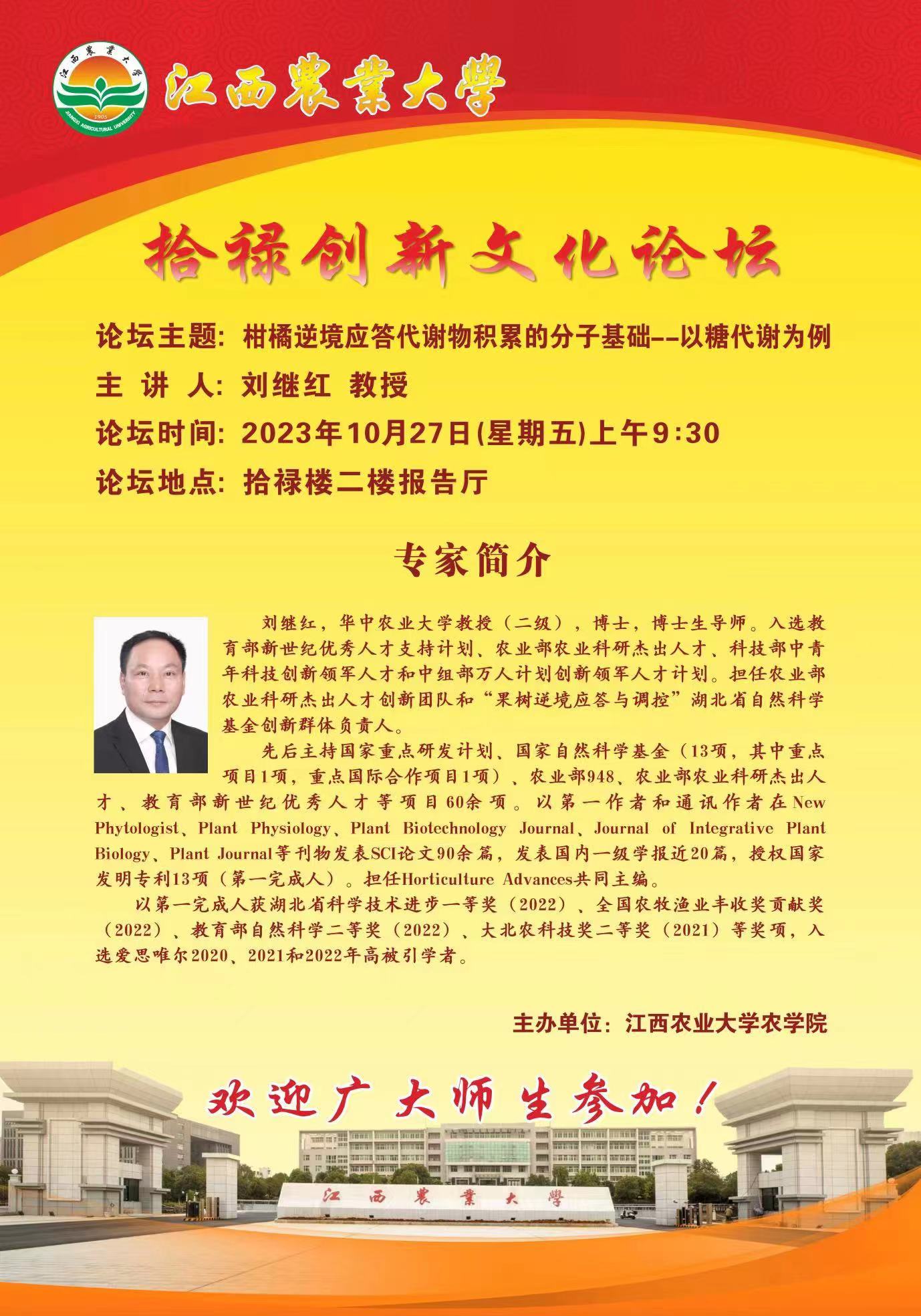 拾禄创新文化论坛:柑橘逆境应答代谢物积累的分子基础--以糖代谢为例