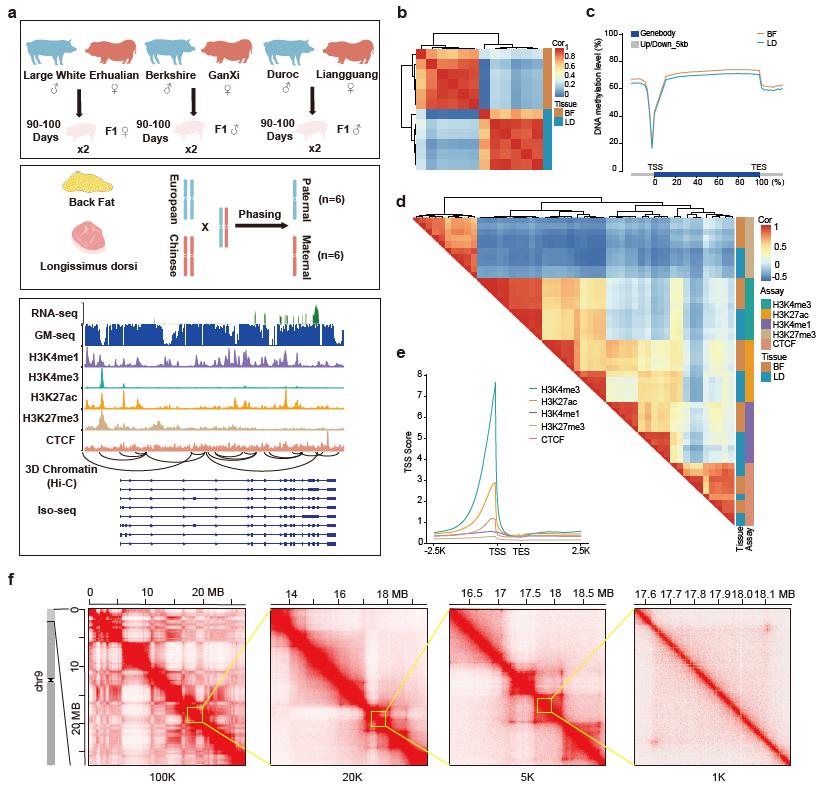 8月14日,bevictor伟德国际1946官网猪遗传改良与种质创新全国重点实验室黄路生院士团队联合四川农业大学李明洲教授团队,在Nature Communications杂志上在线发表题为“Mechanism of Parent-of-origin Effects revealed by Multi-omic data in Euro-Chinese Hybrid Pigs”的研究论文。该研究构建了全球首个同时含染色质构象、DNA甲基化及多种组蛋白修饰的杂交猪父母相高分辨率表观图谱,系统揭示了其在亲本效应(Parent-of-origin effects, POE)中的协同调控机制。中国科学院院士、中国畜牧兽医学会理事长黄路生,bevictor伟德国际1946官网张志燕研究员为共同通讯作者,bevictor伟德国际1946官网李晨宇博士和葛梅博士为共同第一作者; 四川农业大学李明洲教授、龙科任副教授、韩紫音为论文共同作者。