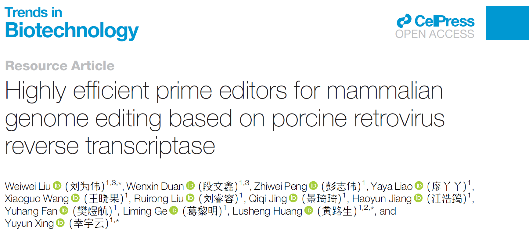 近日,bevictor伟德国际1946官网猪遗传改良与种质创新全国重点实验室黄路生院士团队在国际知名学术期刊《Trends in Biotechnology》(Cell Press 旗下,5年影响因子16.6)发表了题为“Highly efficient prime editors for mammalian genome editing based on porcine retrovirus reverse transcriptase”的重要研究成果。该研究基于猪基因组中的内源性逆转录酶元件,成功开发出一套高效、精准、安全、多物种适用的新型先导编辑(Prime editing)系统—pvPE。伟德黄路生院士、幸宇云研究员与刘为伟博士后(兼第一作者)为通讯作者,博士研究生段文鑫为共同第一作者。