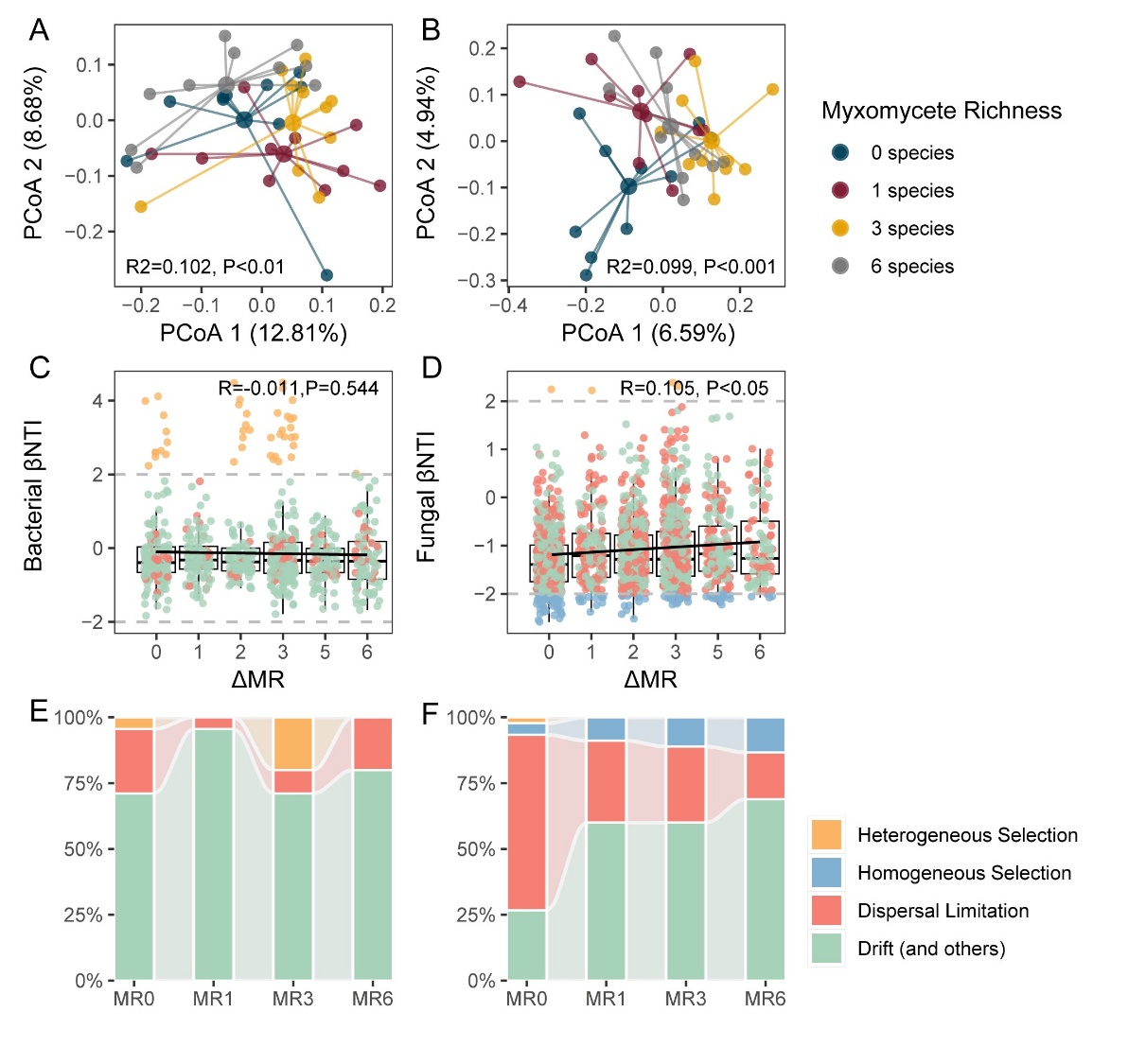 微宇宙中细菌和真菌群落沿黏菌丰富度梯度群落组装变化