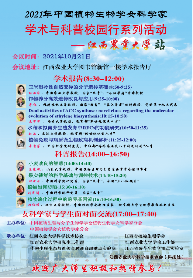 学术报告预告:2021年中国植物生物学女科学家学术与科普校园行系列活动—bevictor伟德国际1946官网站
