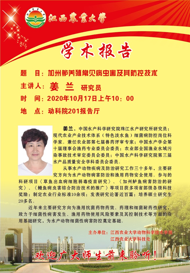下一条:学术报告预告:水产动物抗菌药药理学及临床安全合理应用