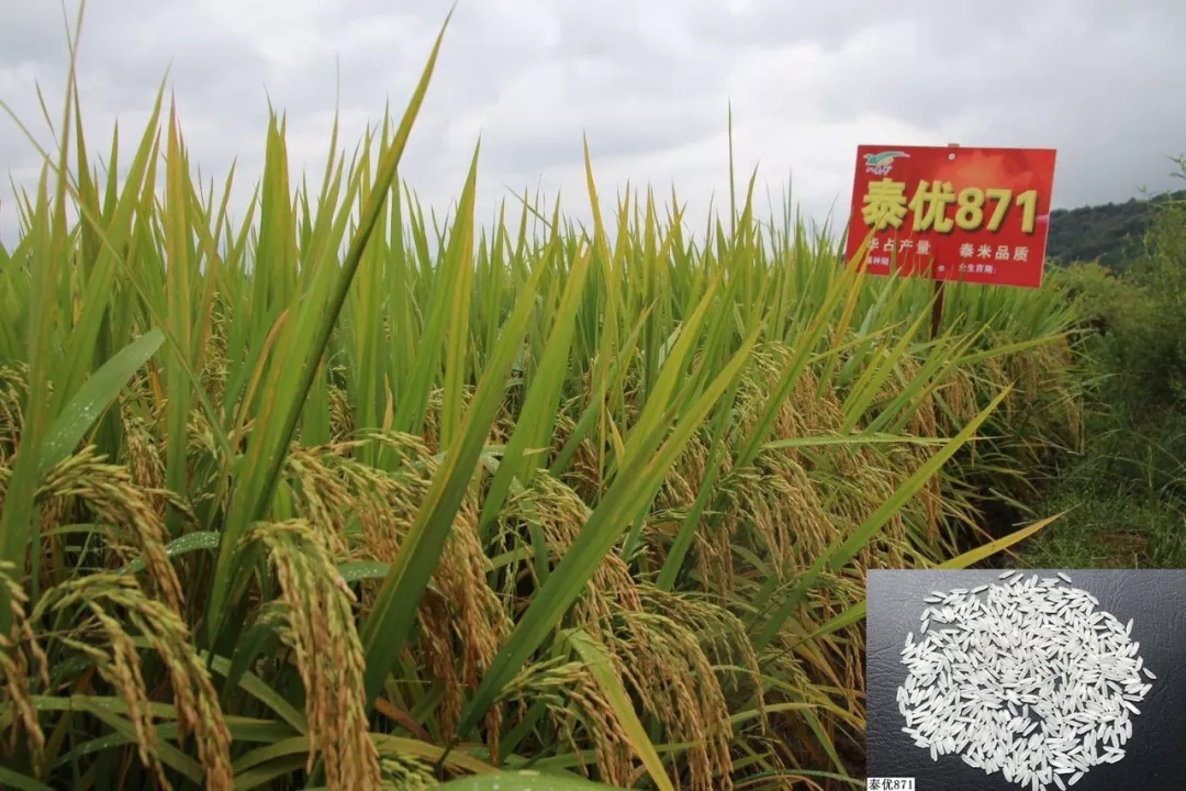 “泰优871”是新时期贺浩华教授团队围绕“优质,高产,安全,高效”的育种目标,深入推进农业供给侧改革,大力实施优质稻米产业化工程背景下培育的又一突破性的水稻新品种,具有“超级稻的产量,泰国米的品质”等特点。该品种于2016年通过江西省审定。2018-2019年连续两年,农业农村部科技教育司委托全国农业技术推广服务中心组织专家,按照超级稻确认办法,分别在上饶珠湖农场和萍乡芦溪县银河镇对“泰优871”百亩示范片进行现场实割测产,产量分别达到701.3kg/亩和688.3kg/亩,达到超级稻产量标准。