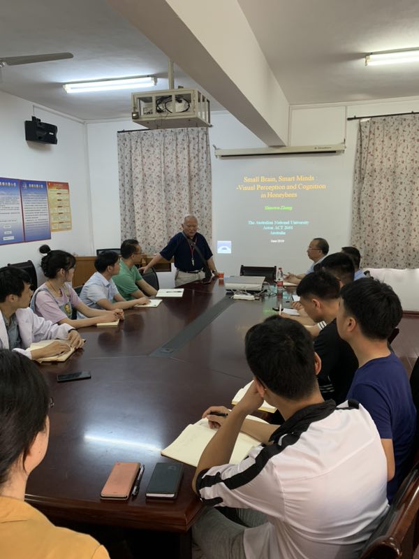 5月31日至6月3日,著名蜜蜂行为学生物学家,伟德特聘教授,澳大利亚国立大学张少吾教授应邀到蜜蜂研究所访问。6月2日上午,张少吾教授在蜜蜂研究所作了题为《Small brain, smart minds: visual perception and cogniton in honeybees》的学术报告,副校长曾志将教授主持了学术报告会。报告内容丰富,讲授深入浅出,开阔了师生的视野。
