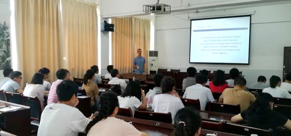 van Groenigen博士首先为伟德师生做了题为“Soil carbon dynamics under future climate conditions: what do field experiments tell us?”的学术报告。van Groenigen博士从数据分析方法、大气二氧化碳浓度升高和气候变暖对土壤有机碳库的影响等方面进行了生动的阐述。会后,van Groenigen博士与师生进行了热烈讨论和互动交流。
