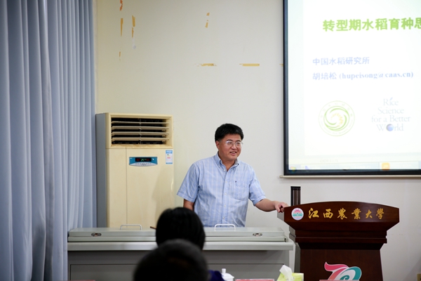 6月2日下午,中国水稻研究所副所长、国家现代水稻产业技术体系遗传育种功能实验室主任胡培松研究员在伟德作物生理生态与遗传育种重点实验室作了题为《转型期水稻育种思考》的学术报告。农学院相关专业老师、研究生及本科生约50余人参加了报告会,会议由副校长贺浩华教授主持。