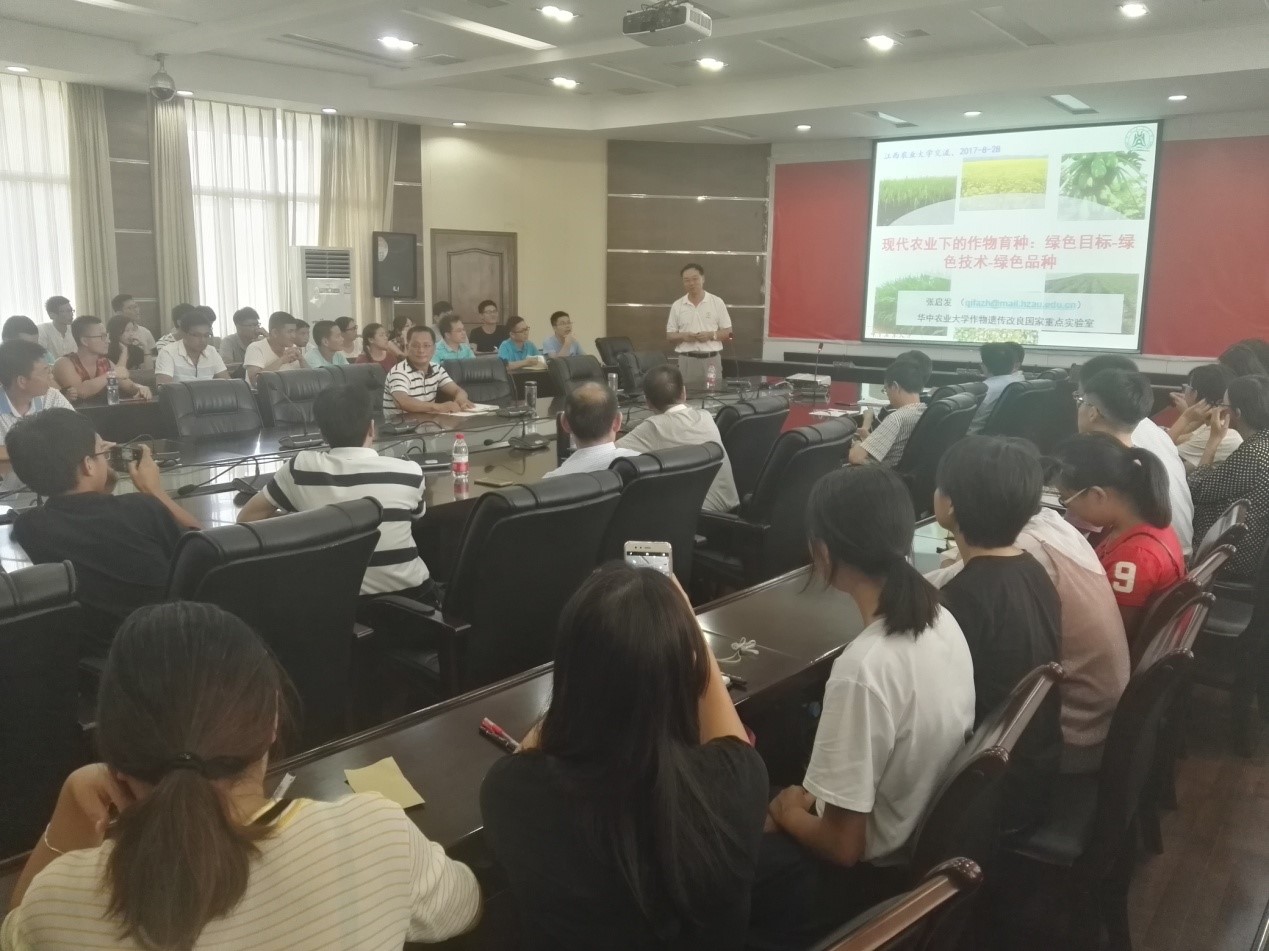 8月28日下午,我国著名的作物遗传育种与植物分子生物学专家、中国科学院院士、美国科学院外籍院士、第三世界科学院院士张启发教授应邀来伟德做学术报告。会前,校党委书记黄路生,校长赵小敏,副校长贺浩华、黄英金等亲切会见了张院士。农学院、动科院、生工院、理学院等相关学院的师生代表参加了报告会,会议由副校长贺浩华主持。
