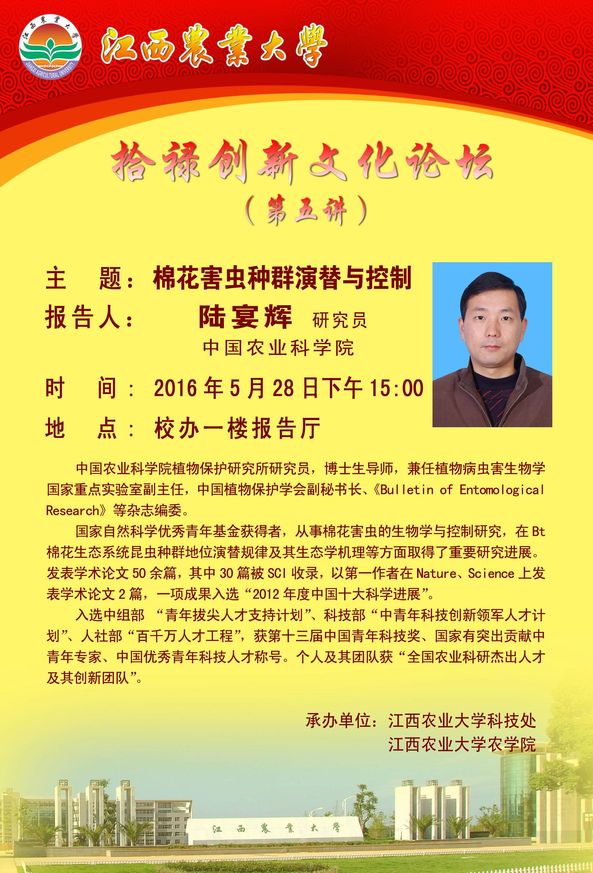 拾禄创新文化论坛(第五讲)海报:棉花害虫种群演替与控制