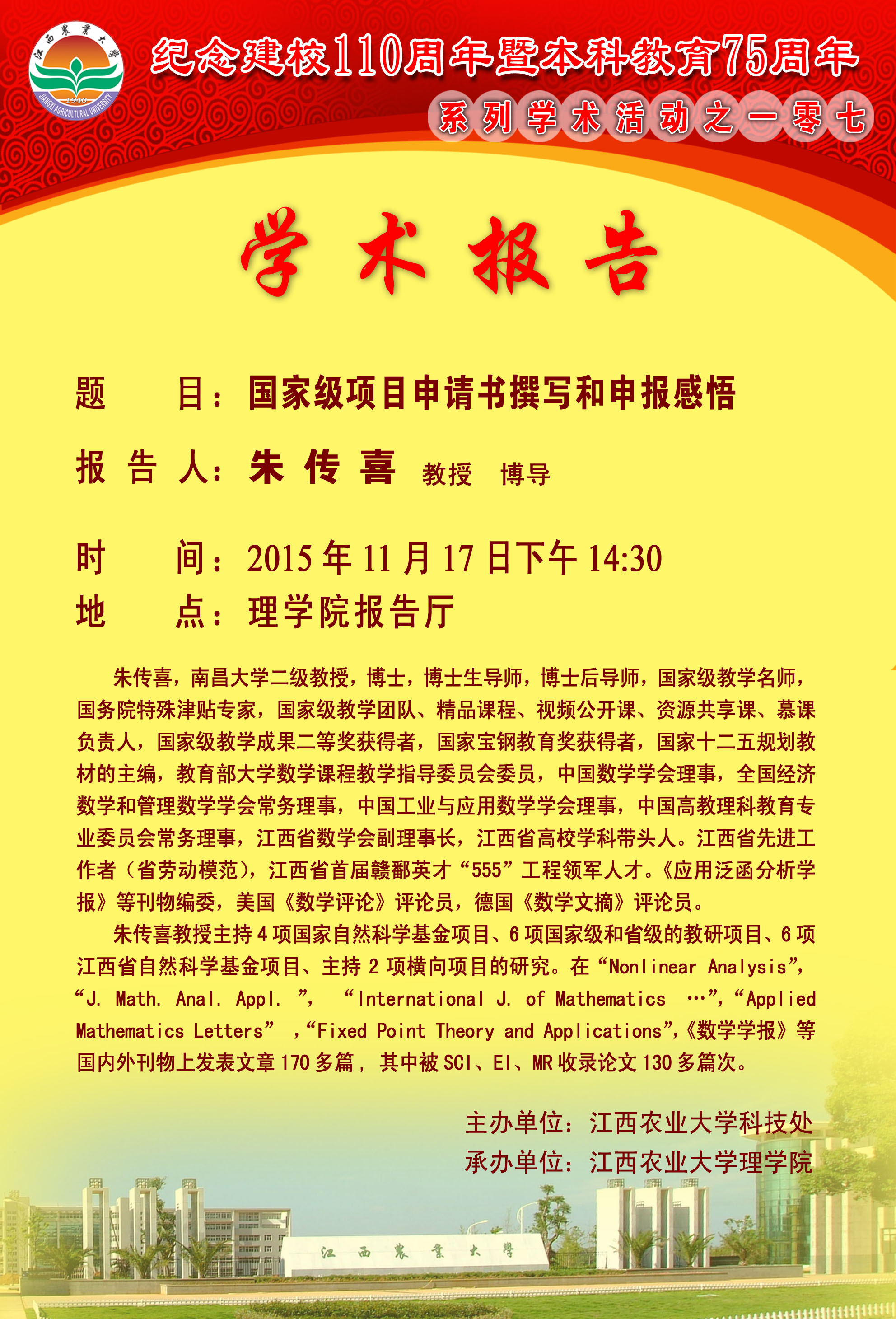 学术报告海报:国家级项目申请书撰写和申报感悟