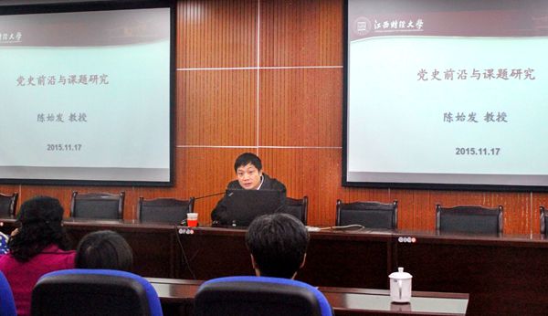 11月17日下午,应伟德政治学院邀请,江西财经大学马克思主义学院院长、博士生导师陈始发教授来校为师生作题为《党史前沿与课题研究》的学术报告。