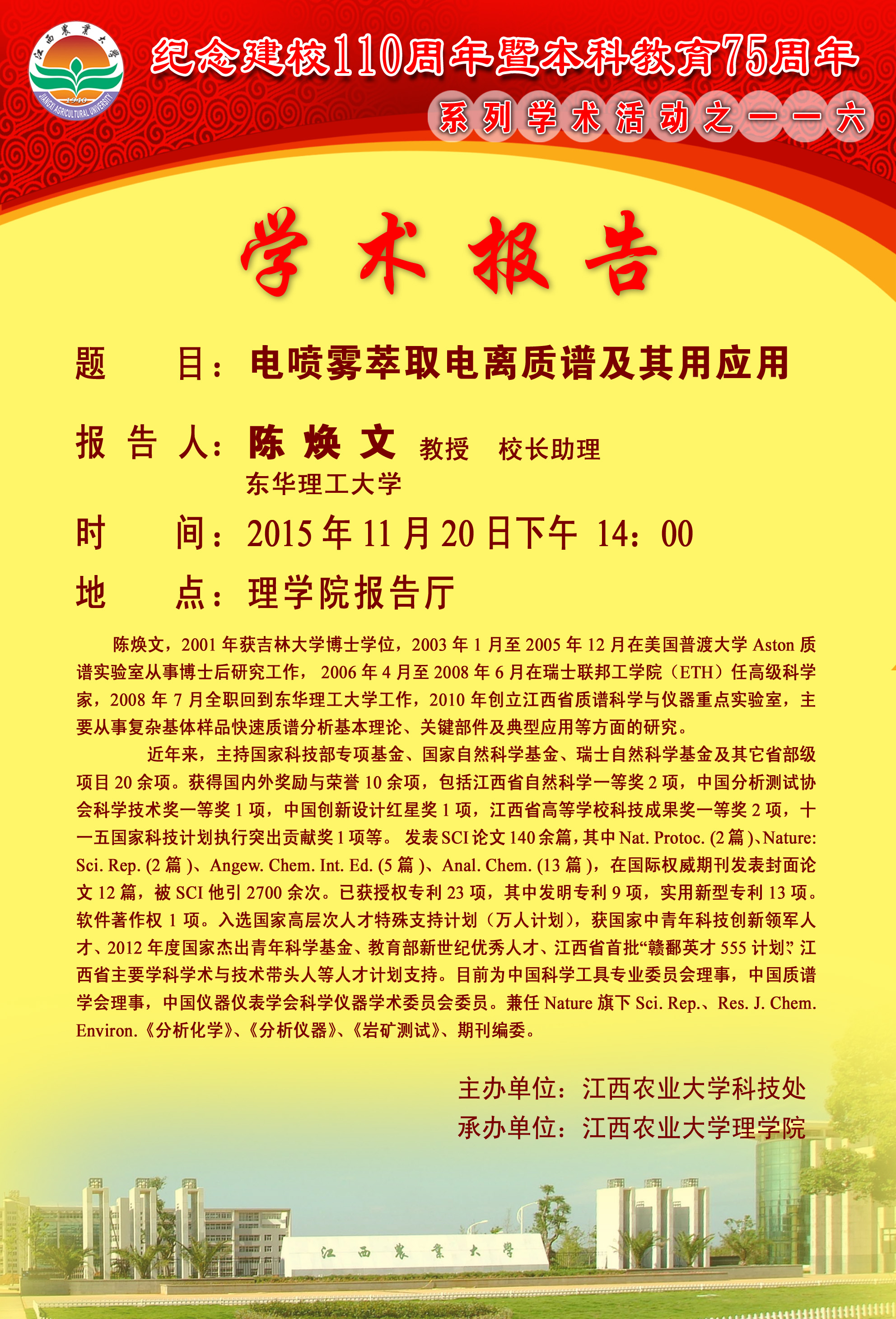 学术报告海报:电喷雾萃取电离质谱及其用应用