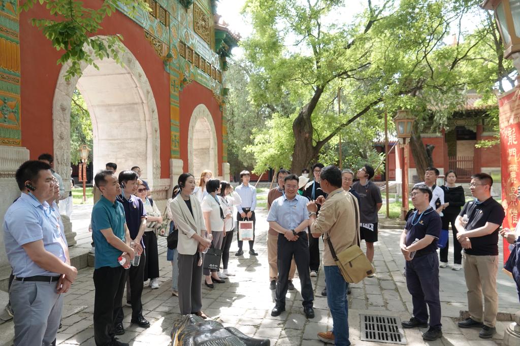 孔庙和国子监博物馆是中国古代元明清三代皇家祭祀孔子的重要场所,也是当时国家最高学府和教育行政管理机构。在讲解员的带领下,学院师生党员们先后来到大成门、大成殿、乾隆石经、太学门、琉璃牌坊、辟雍和彝伦堂等处参观。大家细致观摩,边看边学边交流,感受尊师重教传统,体悟知礼守礼习礼文化内涵,对古代先贤“治国、修身、齐家、平天下”与“忠、正、廉、勤”的思想有了更深的理解和认识。