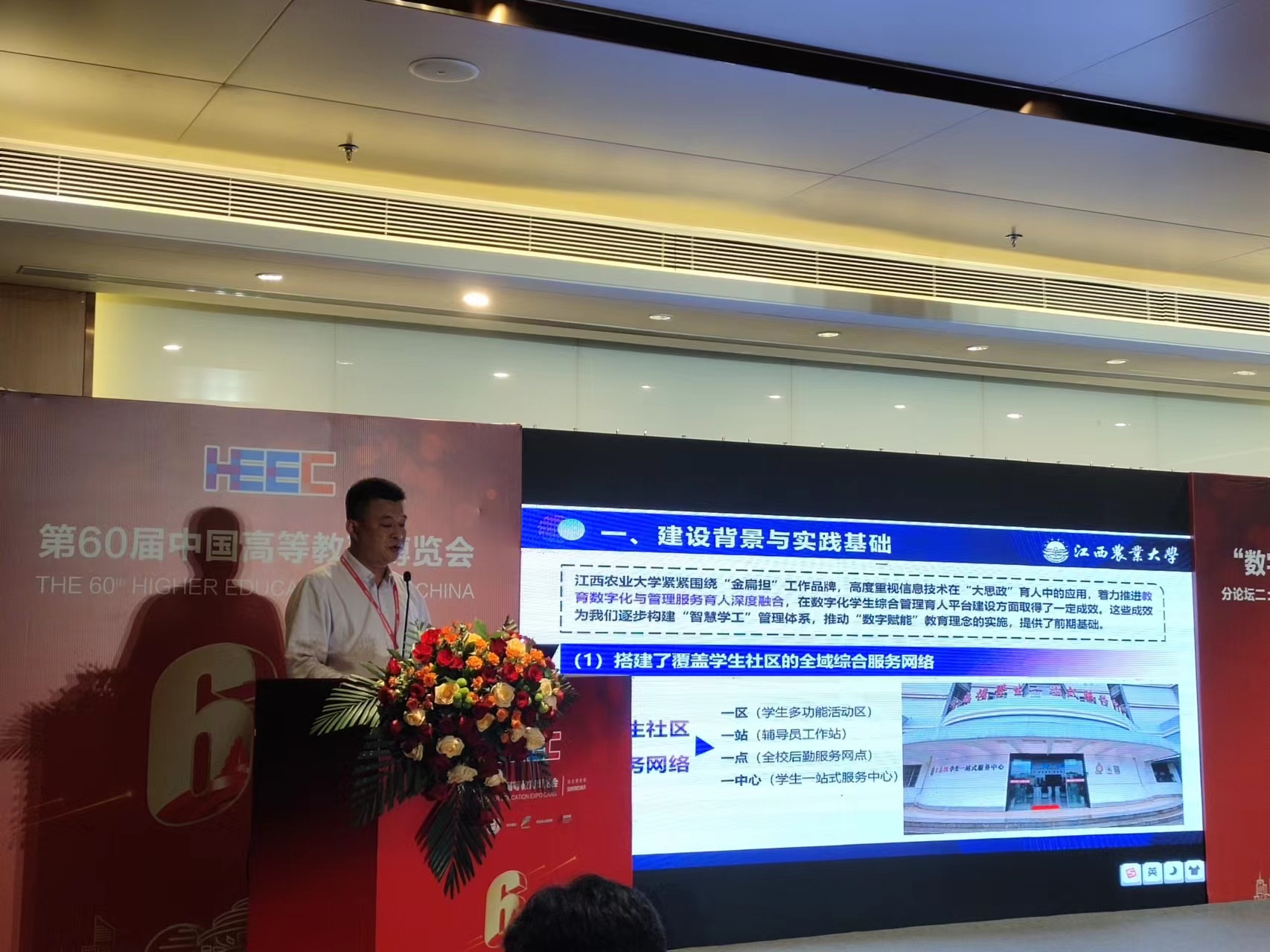 学校大力推进“一站式”学生社区建设工作,将其作为构建学校思想政治工作新生态的关键支撑,以及推动“时代新人铸魂工程”的重要行动。2023年,在2个校区建成“一站式”学生社区并投入使用,并依托网络信息技术,以“江农智慧学工”六大中心建设为核心,推动学生工作信息化与高校“一站式”学生社区建设相融合,构建了“1+2+3+N”的一站式综合育人服务模式。在学生社区服务方面,累计服务时长2600余小时,1953人次学生党员志愿者参与。学校持续关注学生的新需求,不断拓展“一站式”学生社区的服务供给,先后推出了学生成绩打印、学生请销假、失物招领、学生医保、资助等窗口服务。2023年10月,学校受邀参加新时代“数字思政”创新发展论坛并做主题报告。
