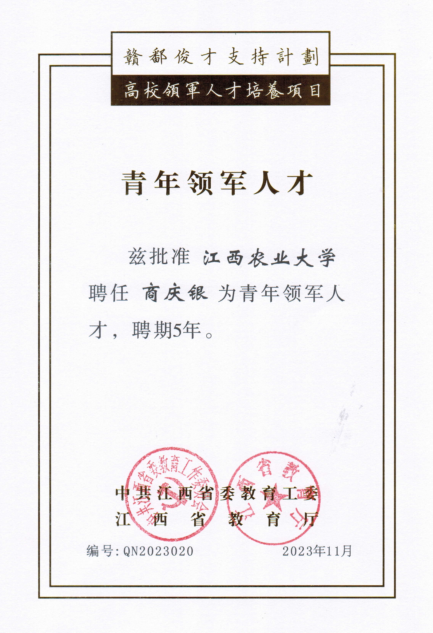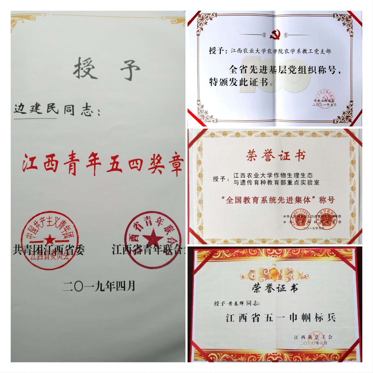 农学院领导班子连续5年获评bevictor伟德国际1946官网优秀领导班子,农学系党支部入选第二批新时代高校党建示范创建和质量创优“全国党建工作样板支部”创建单位,2022年上半年已顺利通过验收,该支部获评2021年“全省先进基层党组织”称号,并被省教育厅推荐参评教育部“双带头人”教师党支部书记工作室。农学院教师荣获“江西省五四青年”奖章、“新时代赣鄱先锋”、“新时代学生心中的好老师”、“五一巾帼标兵”、“江西省三八红旗手”、“江西省巾帼文明岗”“感动江西教育年度人物”、“江西省乡村振兴青年先锋”、“江西省优秀科技特派员”、“全国南繁工作先进个人”、“全省粮食工作先进个人”、“江西省农业、农村工作先进个人”、“全省高校优秀共产党员”等省级及以上荣誉和称号40余人次。作物遗传育种团队荣获江西省委教育工委“工人先锋号”称号,作物生理生态与遗传育种教育部重点实验室荣获“全国教育系统先进集体”称号。
