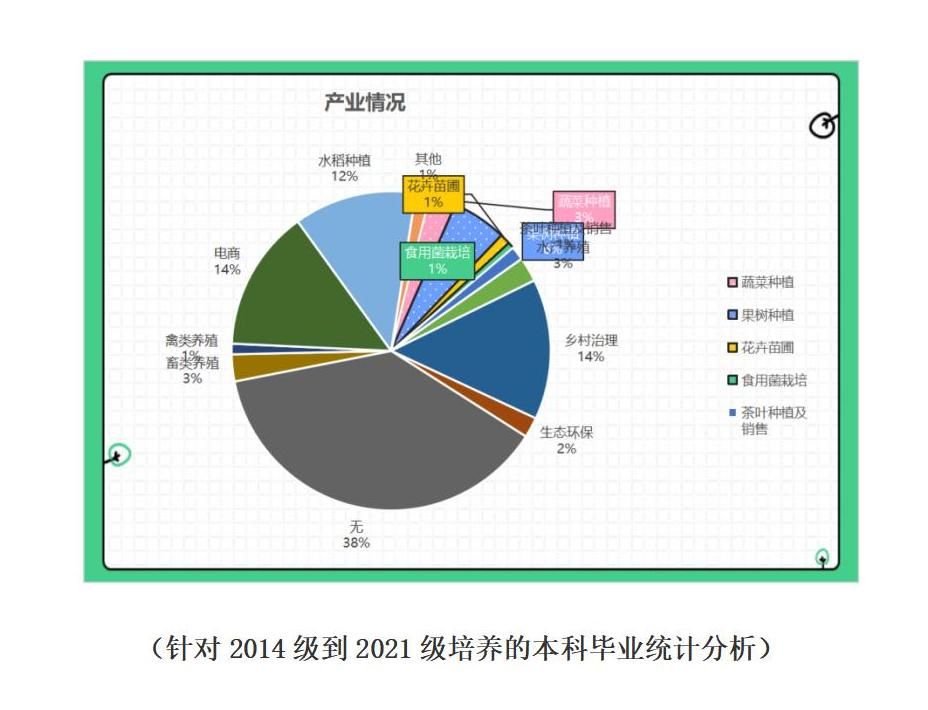 2023年6月份,伟德针对2014级到2021级培养的本科毕业7214名学员进行问卷调查,截至6月26日收回有效问卷6140份,经统计分析,入学培养后,培养成效显著。在6140名的学员中,共产党员占比69.4%;村“两委”干部以及乡镇干部占比47.39%。而且62.08%的学员都各自发展了自己的农业产业,学员产业情况见下表。毕业的6140名学员中,扎根农村比例59.18%;1465人进入乡镇领导班子或招录为公务员或转为事业编;71人次获得国家级荣誉,274人次获得省级荣誉,1103人次获县级以上荣誉。