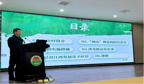 本次课程还邀请了江西省劳动模范、铜鼓县永宁镇八亩村党支部书记周庆绪,向同学们分享铜鼓县八亩村在生态环境保护中发展经济、在经济发展中保护生态环境践行习近平总书记“绿水青山就是金山银山”理念的具体实践。