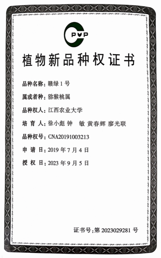 日前,伟德农学院徐小彪教授团队在猕猴桃新品种选育与抗坏血酸调控机制研究方面取得新进展。团队选育的毛花猕猴桃‘赣绿1号’(品权号CNA20191003213)和中华猕猴桃‘赣金2号’(品权号:CNA20201000528)获国家植物新品种权证书。‘赣绿1号’果实可溶性固形物含量(19.40%,最高达22.2%)显著性高于国内外已有报道的毛花猕猴桃品种;‘赣金2号’为单花结果为主的中熟四倍体品种,果肉金黄,肉质细嫩。