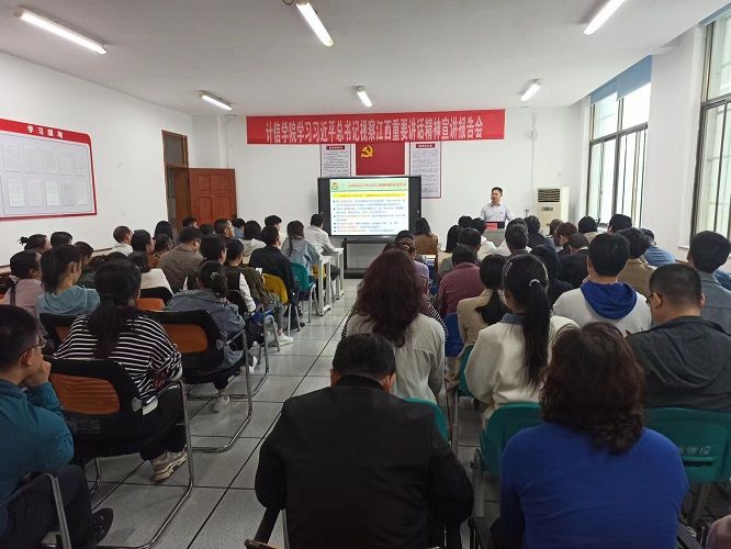 为深刻学习宣传贯彻习近平总书记考察江西重要讲话精神,117日下午,学校党委副书记蔡海生赴计信学院作宣讲报告,计信学院全体老师与部分学生党员代表近100人聆听报告。