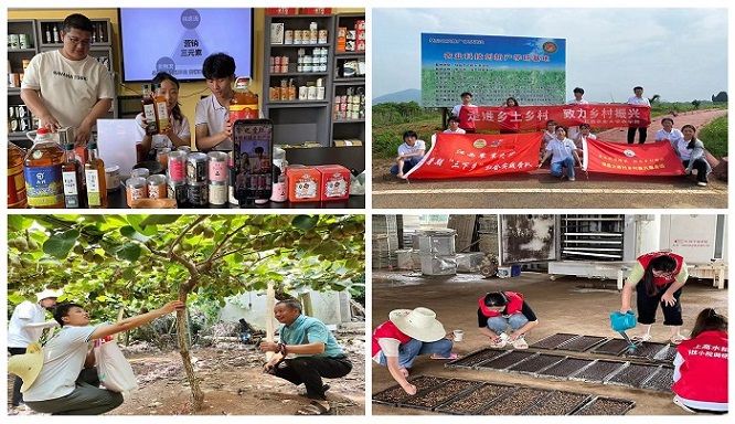科技小院厚植爱农情怀。“科技小院在打通农技推广‘最后一公里’上发挥了巨大作用” ,上高县曾家村党支部负责人欣喜地说道。在上高水稻科技小院,营队的同学们参加了小院导师和研究生的科技支农服务;在奉新猕猴桃科技小院,队员们协助导师开展了农技培训,在种植基地进行了除草和疏果劳动;在瑞昌黑芝麻科技小院,指导老师在田间为同学们讲解了黑芝麻种植关键技术,企业负责人带领同学们参观了生产车间和产品展厅,同学们走进线上平台开展了直播带货助力特色农产品销售活动。