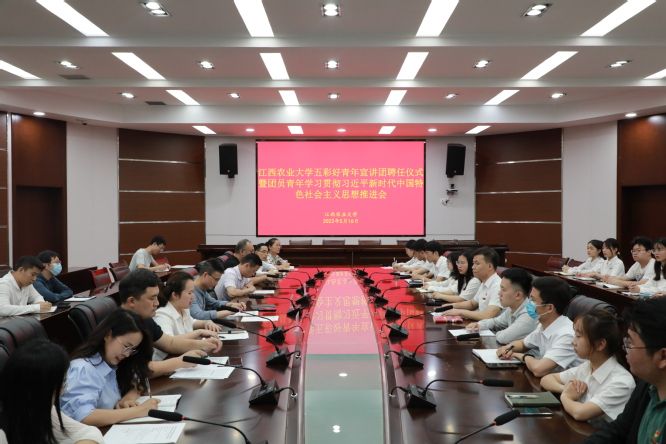 5月16日下午,伟德“五彩好青年”宣讲团聘任仪式暨团员青年学习贯彻习近平新时代中国特色社会主义思想推进会在校办二楼圆形会议厅举行。校党委组织部、宣传部,校团委、各学院团委有关同志及“五彩好青年”宣讲团全体成员参加会议。