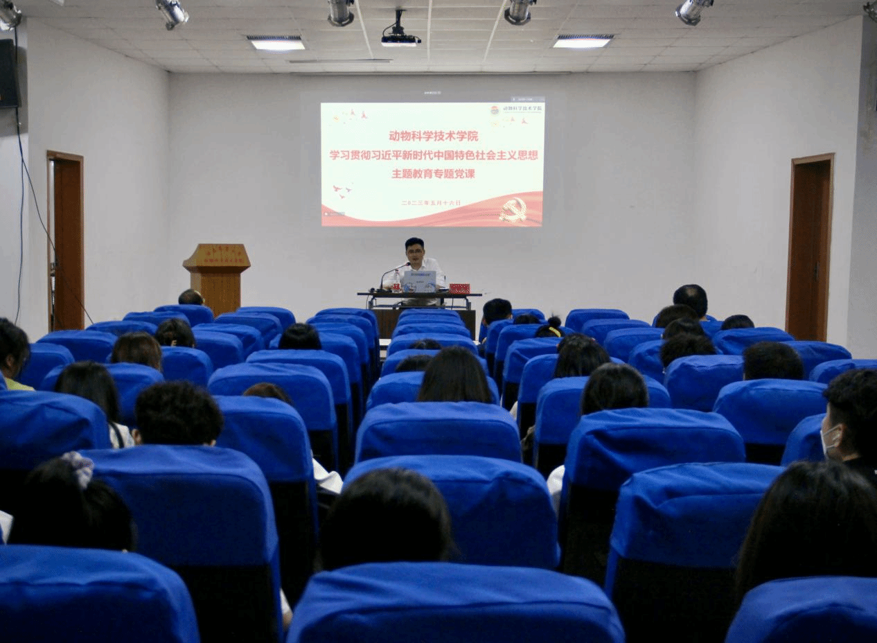 为扎实推进学习贯彻习近平新时代中国特色社会主义思想主题教育,5月16日,校党委委员、副校长张高亮到动物科学技术学院讲授专题党课,学院主题教育读书班成员、党支部书记、师生党员共计200余人以线上线下相结合的方式参加。