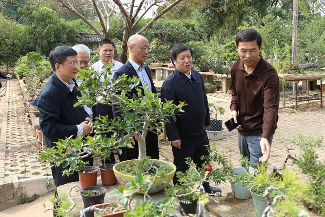 孙菊生一行首先来到猪遗传改良与养殖技术省部共建国家重点实验室研究,听取学校一流学科建设、猪遗传改良与国家重点实验室研究进展、研究展望等方面情况汇报,实地察看“三家村”原郑家、原朱家搬迁地块及伟德花卉盆景基地。