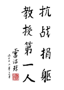 闻名遐迩的民主斗士、伟大的爱国主义者。1919年,年仅14岁的雷洁琼就积极参加五四运动,怒斥卖国贼和强盗。1935年“一二·九”运动爆发,她是燕京大学唯一参加游行的女教师。1936年冬,她作为慰问团团长,率燕京大学师生赴前线慰问参加绥远抗战的将士。抗日战争全面爆发后,她撰写文章、举办讲座、创办刊物、发动群众、培训妇女,为抗日救亡工作和妇女运动作出了积极贡献。抗战胜利后积极参加中共上海地下党组织开展的社会活动。1945年12月雷洁琼参与创建了中国民主促进会。1946年重返北平燕京大学任社会学系教授。1946年6月23日,上海人民团体联合会组成赴京和平请愿团,41岁的她是请愿团最年轻的代表,代表团到达南京下关车站时,遭到特务暴打,酿成“六·二三”下关惨案,她也身负重伤。1948年,她与进步人士一道在西柏坡见到毛泽东、周恩来、刘少奇、朱德、任弼时等中共中央领导,并与毛主席进行了难忘的长谈,坚定了接受中国共产党领导的政治立场。