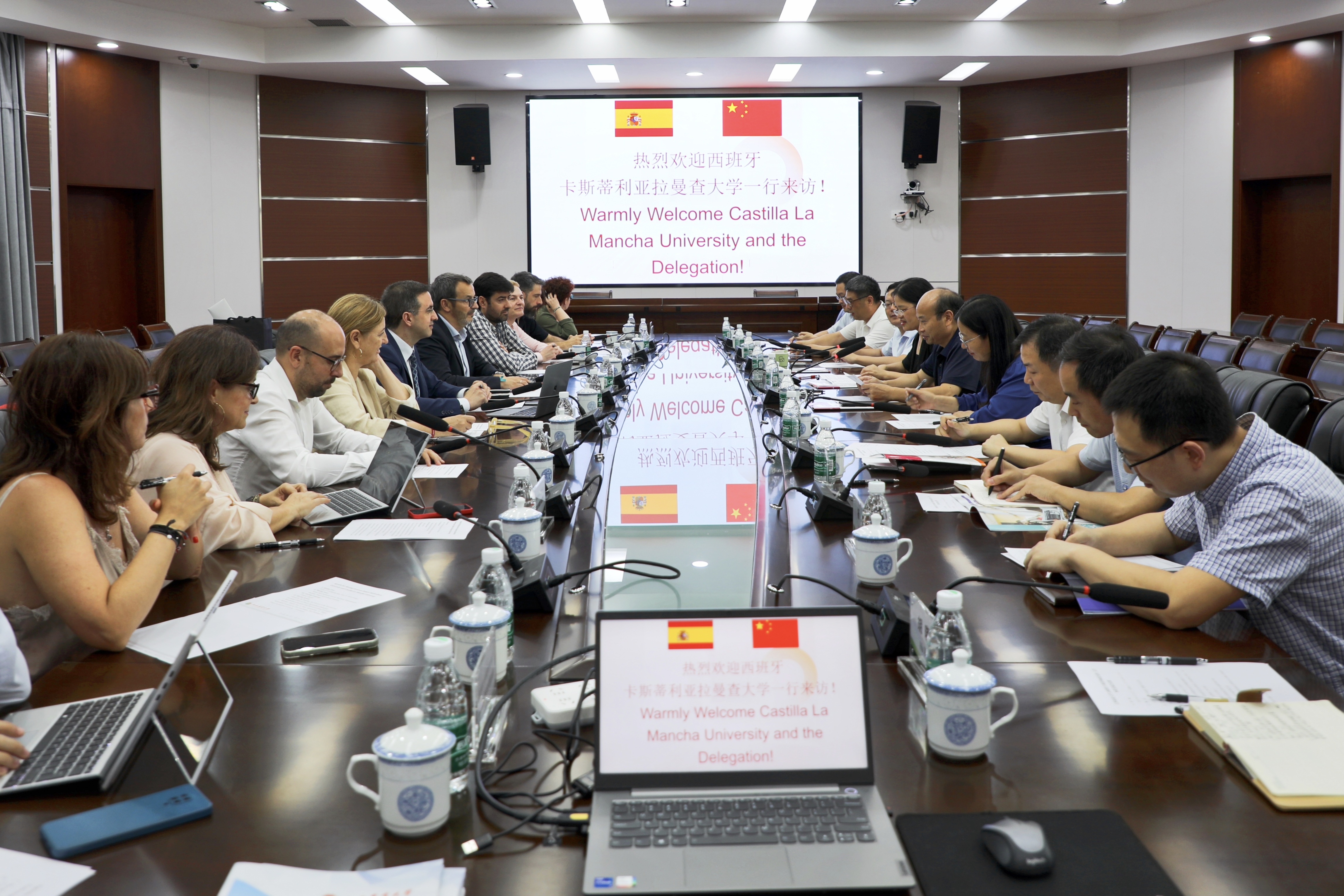6月21日下午,西班牙卡斯蒂利亚拉曼查大学分管国际化副校长劳尔·马丁·马丁(RAÚL MARTÍN MARTÍN)、分管发展规划副校长弗朗西斯科·何塞·赛斯·马丁内斯(FRANCISCO JOSÉ SAEZ MARTÍNEZ)以及分管创新创业及就业工作副校长安赫拉·冈萨雷斯·莫雷诺(ÁNGELA GONZÁLEZ MORENO)等一行来校访问。副校长刘木华在校办二楼圆厅会议室会见来宾并开展座谈会。国际交流处、动物科学技术学院、林学院、国土资源与环境学院等相关部门和学院负责人参加座谈会。