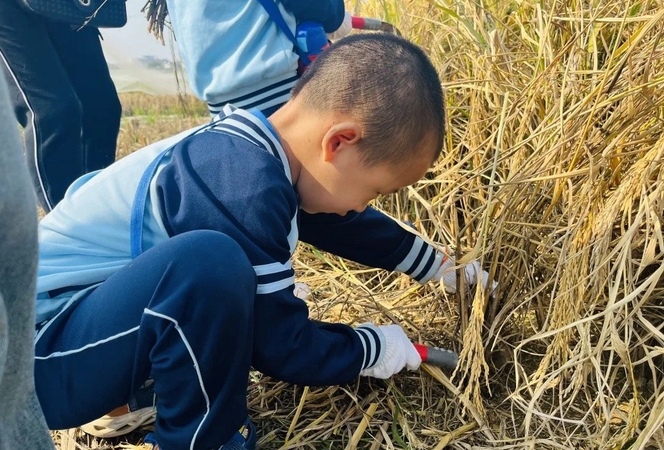 金色“炼心”,锻炼意志品质。农大保育院结合劳动教育,通过邀请专家教授上课,组织孩子们到实验田播种、插秧、收割稻谷等一系列活动,让孩子们了解了稻谷的生长过程,体验了农民辛勤劳动的艰辛,从而更加珍惜粮食,尊重劳动。同时还结合稻作文化开展了一系列富有创意的课程,如稻谷画、稻草人制作等,让孩子们在动手操作中深入了解稻作文化的内涵,培养他们的劳动精神和创造力。在这里,孩子们学会了坚持、学会了勇敢,他们的心灵在金色的洗礼中变得更加坚强。