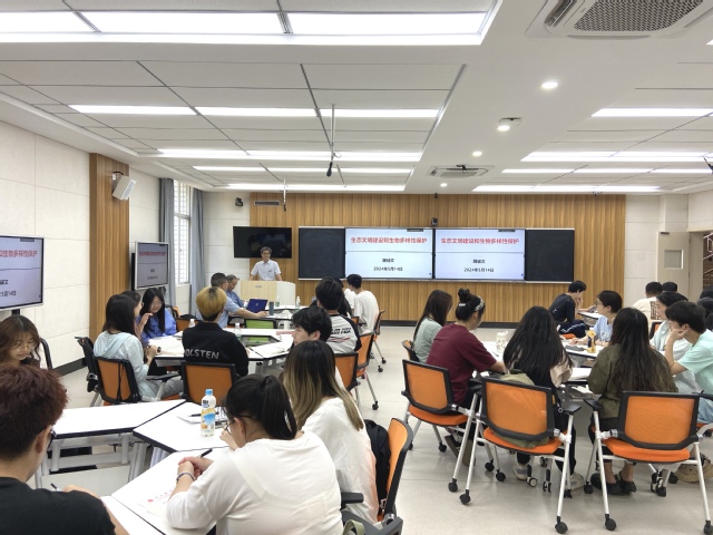 魏辅文以生态文明建设和生物多样性保护为题,围绕习近平生态文明思想的主要内容、建设生态文明和开展生物多样性保护的重大意义及推进举措、我国生态文明建设的国际合作等方面进行系统讲授,并介绍了学校在服务国家及我省重大发展战略、生态文明建设、生物多样性保护等方面工作的思路举措及取得的初步成效。魏辅文的授课具有国际视野,内容丰富、案例鲜活,拓宽了同学的眼界,激发了大家学好专业、挺膺担当的热情与自信。