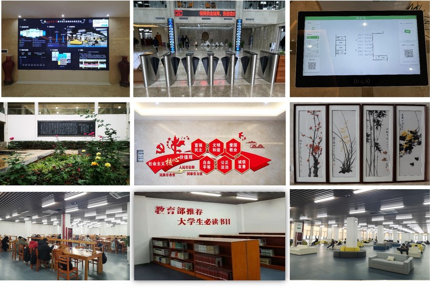 随着新图书馆及东区分馆启用,图书馆馆舍面积达5万余平方米,座位数达8000余个,极大地改善了办馆条件,为读者营造了更加舒适的阅读空间。为满足读者需求,主动将周开放时间由原来的98小时延长到现在的105小时(考研自修室达到112个小时)。重新调整了空间布局,开设新书展示区、信息共享空间、研修室、书吧、就餐区等,构建了丰富多元的服务场景。积极推动智慧图书馆建设,购置朗读亭、自助借还机、座位预约管理系统、大数据展示平台等现代化技术设备,全面提升了图书馆的服务水平。
