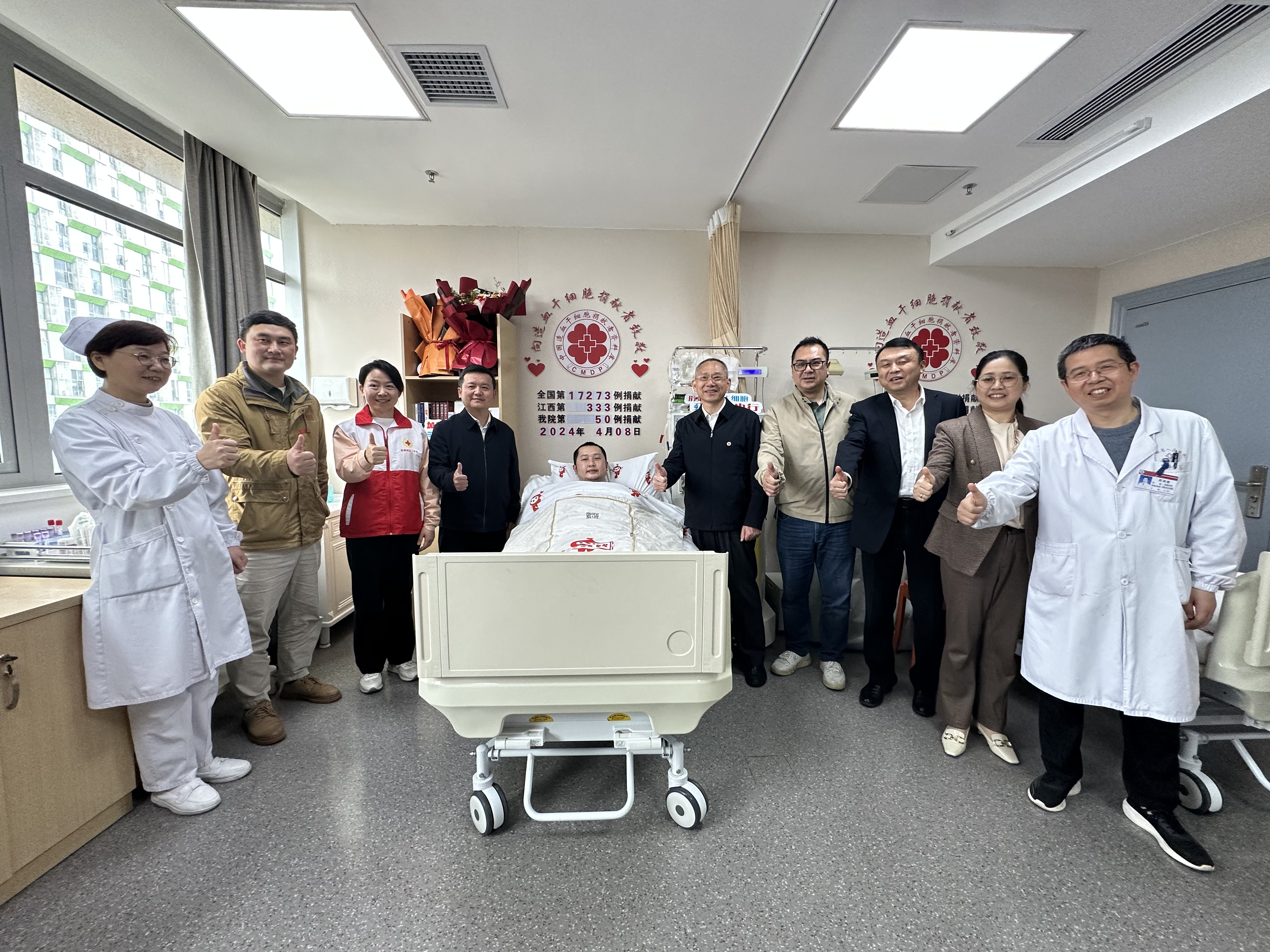 校友曹先生毕业后任职于中国人民银行乐平支行,2021年,被授予“中国人民银行景德镇中心支行优秀共青团干部”称号。他一直以来热心公益,多次参加红十字会组织的无偿献血活动,距今共志愿献血8次,累计3200毫升,并在2021年登记加入中国造血干细胞捐献者资料库(中华骨髓库)。2023年12月,曹先生接到通知,得知其已与一名患者初步配型成功后,毫不犹豫地同意捐赠造血干细胞。在家人和单位领导的支持下,他顺利地通过体检,踏上了赴昌捐献造血干细胞的征程。