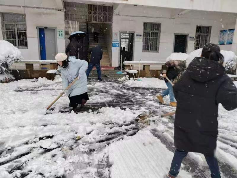 师生们冒着严寒、迎着飞雪,手拿铁锹、扫把等清理工具,齐心协力、通力合作,在办公楼、实验楼、商业街等区域,清理出一条条方便、安全的通道,充分展示了师生积极向上、勇于担当的精神面貌,以实际行动为冬日的校园增添一份温暖。