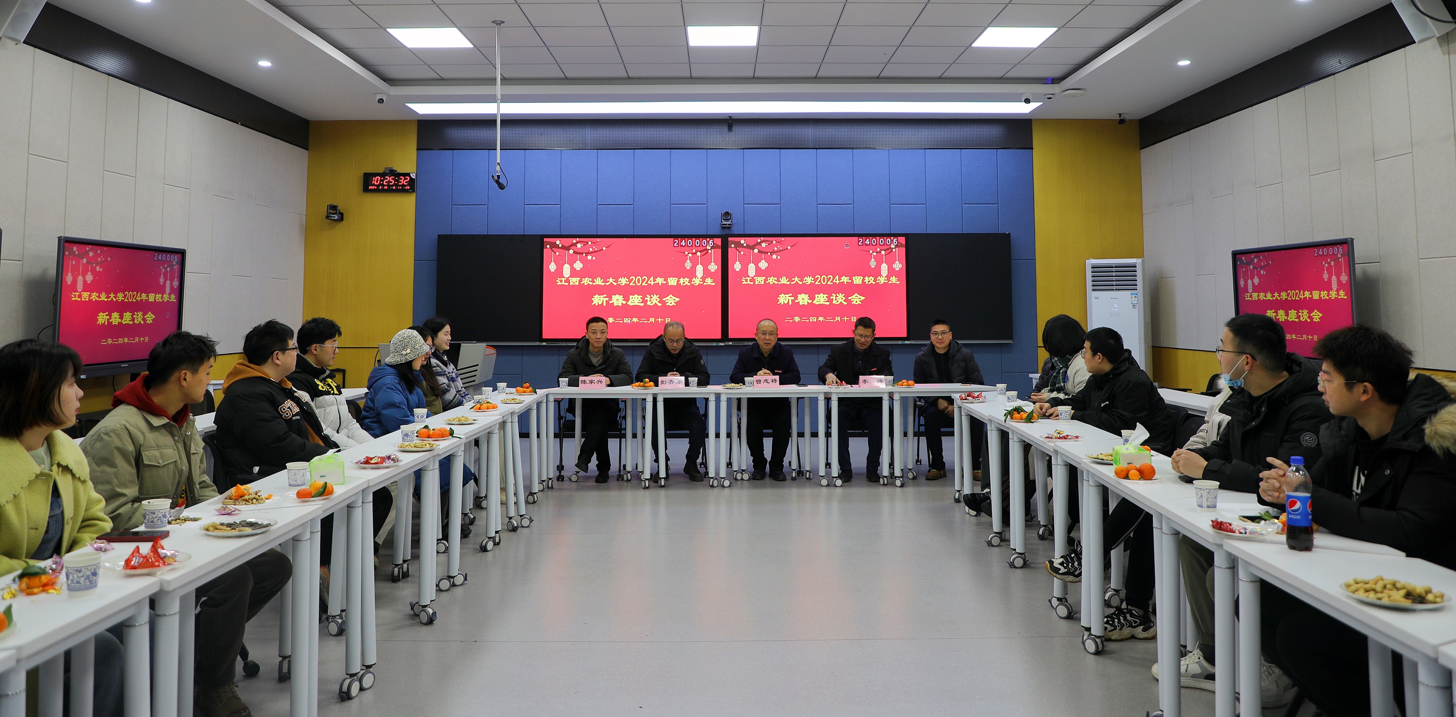 曾志将代表学校向留校师生致以新春问候和新年祝福。他表示,在过去的一年里,学校各项事业发展迅速,成绩喜人,教学质量稳步提升,学科专业结构持续优化,科研创新成果丰硕喜人,人才培养质量不断提高,社会服务能力持续提升,师生获得感、幸福感进一步增强。曾志将表示,成绩来之不易,凝聚了每一位江农师生的心血和汗水,真诚感谢每一位江农师生的努力付出。曾志将希望春节留校同学,注意用电安全,多与家人联系,注意劳逸结合,既要抓紧时间开展实验,也要好好享受新春佳节。