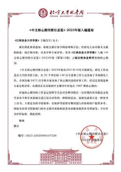 《bevictor伟德国际1946官网学报》连续7次入选北京大学中文核心期刊要目“综合性农业科学”类核心期刊,也是继本年度入选《中国科学引文数据库(CSCD)来源期刊(2023—2024年度)》、2023年版中国科技核心期刊、《科技期刊世界影响力指数(WJCI)报告(2023)》,以及荣获“2023年度中国高校科技期刊建设示范案例库·团队案例”“2023年中国农业期刊行业优秀团队”称号后再获荣誉。