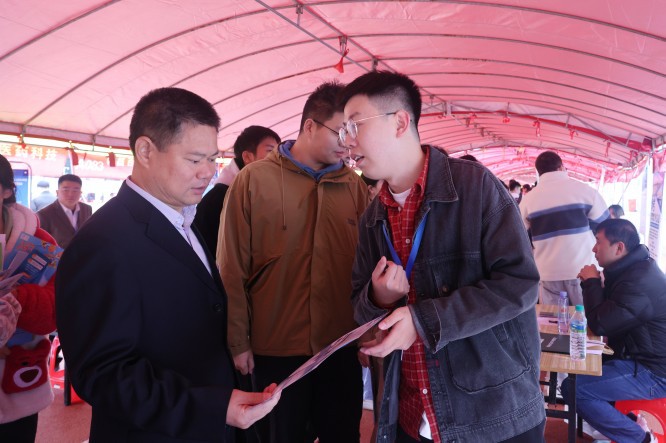 校党委书记黄路生院士、校党委副书记蔡海生走进招聘会现场指导工作,详细了解就业及人才需求情况,促进毕业生高质量充分就业。校领导来到企业招聘点,与用人单位和毕业生亲切交流,询问企业发展情况、招聘需求和招聘岗位,鼓励企业招聘录用农大毕业生,详细了解毕业生就业意向,鼓励毕业生积极转变就业观念,把握就业机会。