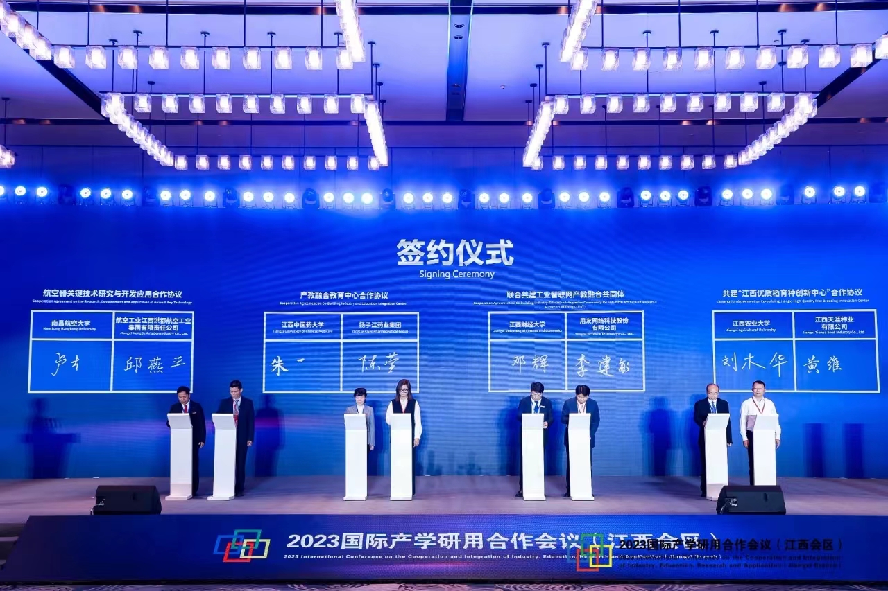 10月26日,2023国际产学研用合作会议(江西会区)在昌开幕,本次会议以“多元合作,开放共赢”为主题,共同构建产学研用“海内外合作,区域间互济”的江西会区新格局。开幕式现场,还举办了相关签署、授牌、揭牌及签约仪式,赣、鄂、湘、川、渝、贵、藏七地共同签署了《江西会区国际产学研用合作共建共享机制》,6个国际产学研用学科联盟授牌、8个合作平台揭牌、9个合作项目签约。其中伟德副校长刘木华代表bevictor伟德国际1946官网与江西天涯种业有限公司进行了合作项目签约,共建“江西优质稻育种创新中心”合作协议。随后举行的“江西会区共享汇”,来自国内外高校、企业的5名代表围绕国际产学研用合作主题作了经验分享。伟德留学生代表应邀参加此次活动。