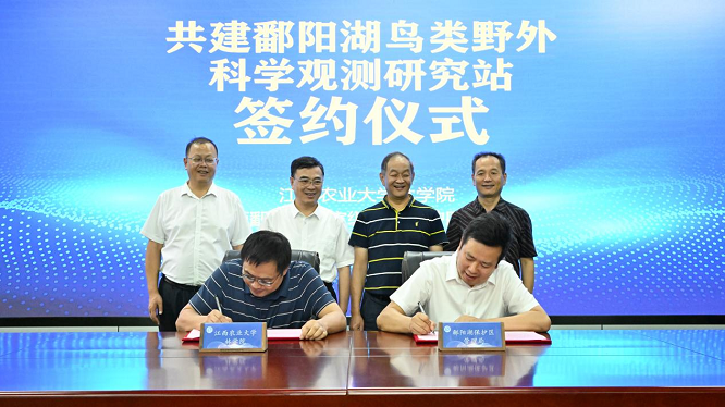 考察调研人员先后到保护区大湖池保护站、吴城监测站、八字墙科研基地等进行现场考察。随后,在吴城站召开座谈会,并由伟德林学院负责人与江西鄱阳湖国家级自然保护区管理局负责人签订了鄱阳湖鸟类野外科学观测研究站共建协议。